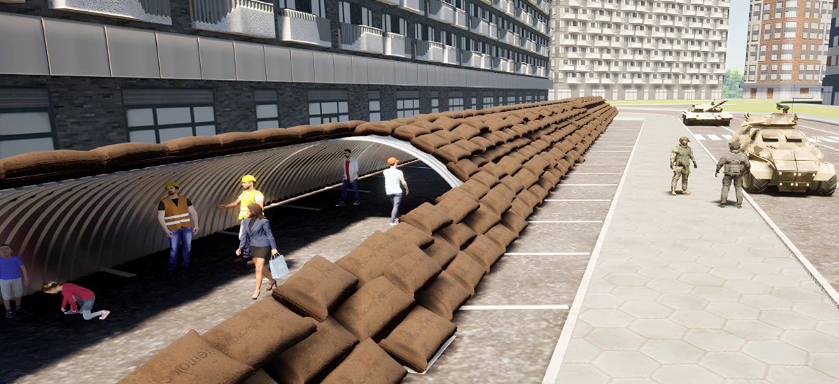 Schrony modułowe to gotowe rozwiązanie, w pełni zgodne z wymaganiami ustawy o ochronie ludności i obronie cywilnej, które umożliwia szybkie zapewnienie miejsc schronienia bez konieczności prowadzenia długotrwałych i kosztownych prac budowlanych. Konstrukcja oparta jest na kompozytowych pierścieniach montowanych bezpośrednio na gruncie. Dzięki modułowej budowie, poszczególne elementy można swobodnie łączyć, tworząc schrony o dowolnej długości. System umożliwia budowę małych miejsc doraźnego schronienia, przeznaczonych dla kilku osób, aż po rozbudowane budowle ochronne przeznaczone nawet dla 500 osób. Ze względu na swoją konstrukcję, moduły można bezpiecznie przemieszczać i ponownie instalować w innych lokalizacjach, np. wzdłuż ciągów komunikacyjnych lub w rejonach o zwiększonym zagrożeniu, bez użycia ciężkiego sprzętu dźwigowego.